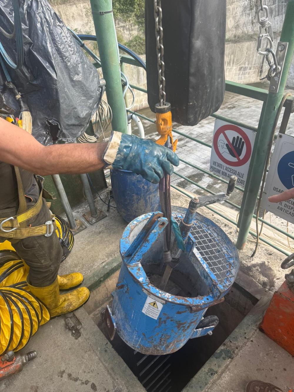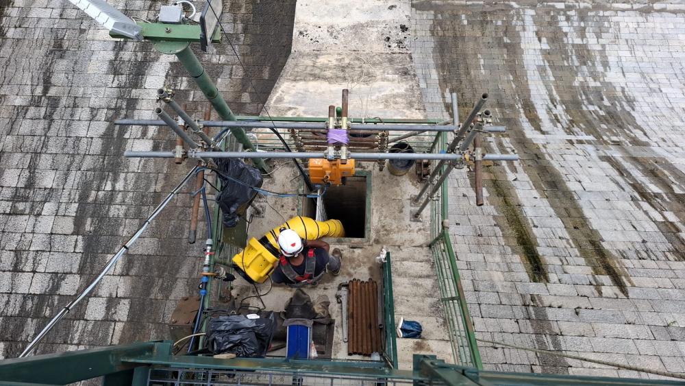 L’intervento ha dovuto fare i conti con un accesso estremamente limitato e con le difficoltà tipiche di uno spazio confinato, dove la sicurezza, la ventilazione e le comunicazioni costanti erano condizioni imprescindibili.