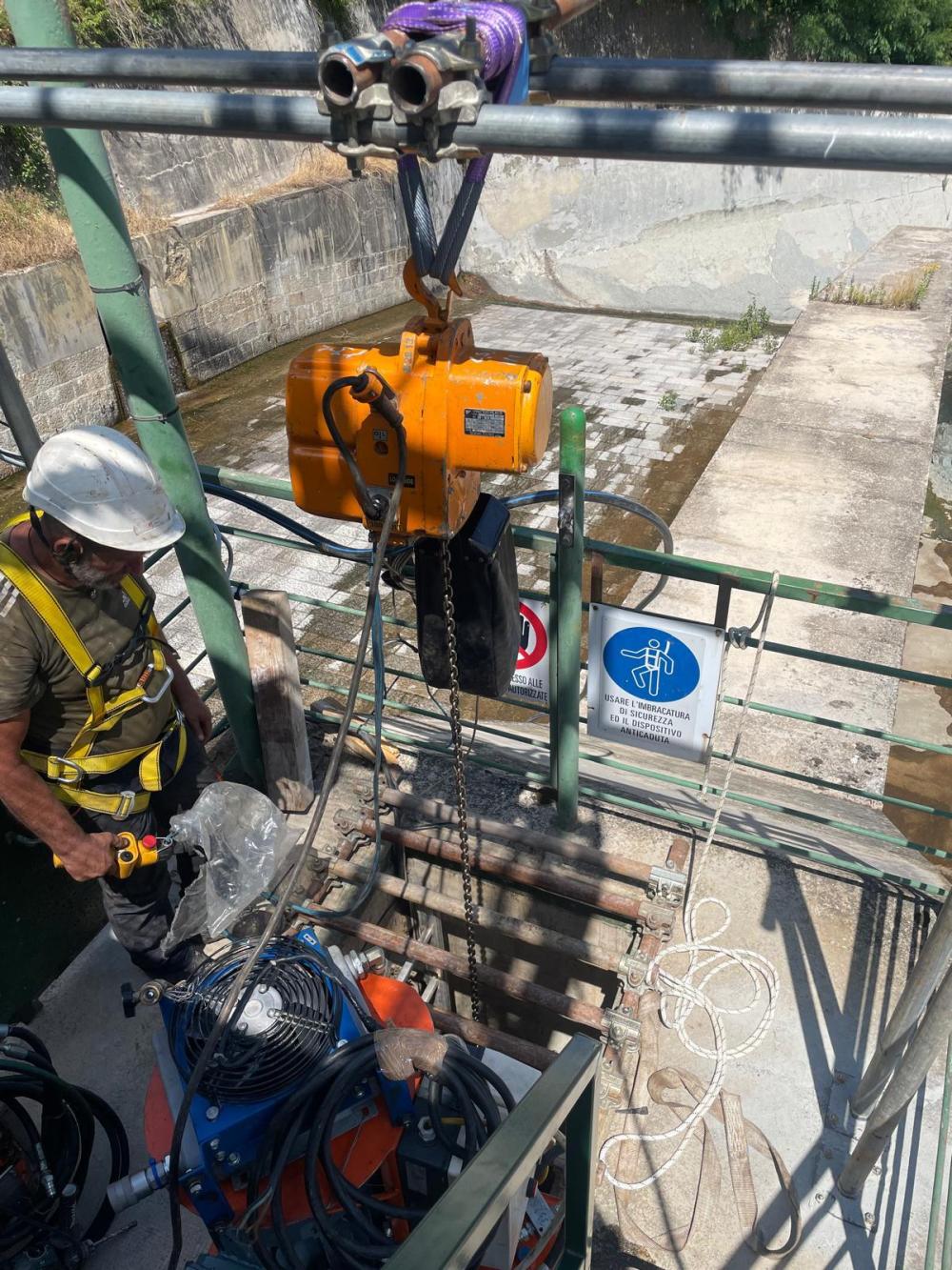Grazie all’esperienza maturata in contesti complessi, CSI ha studiato e pianificato in dettaglio la logistica del cantiere. È stato installato un ponteggio di sostegno dell’argano certificato da tecnico abilitato; le attrezzature sono state adattate alle dimensioni ridotte; sono stati previsti sistemi di comunicazione interni (telefono fisso e walkie-talkie) ed esterni (telefono satellitare), un impianto di ventilazione dimensionato sull’ambiente, illuminazione artificiale e rilevatori di ossigeno e gas per monitorare la qualità dell’aria in continuo.